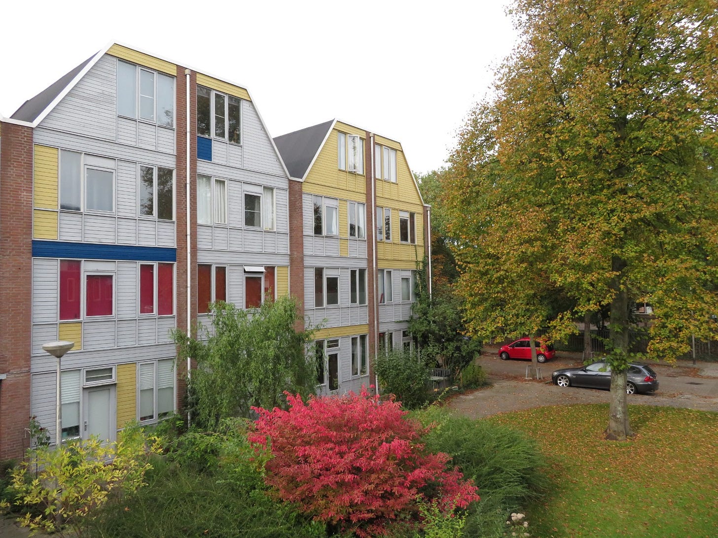 Some of the co-housing projects are multi-gender and multi-generational and include couples and families, like Centraal Wonen Delft (below) in the Netherlands, cool social housing designed for a hundred residents with large, shared kitchens which has been around since the 1980s. Others, like New Ground in North London, are women-only with a strong feminist ethos and focus on the later years: the youngest resident there is 58, the oldest, 95. Some women work, others volunteering, others writing and painting. The modern glass and brick buildings include communal eating, gardening and meeting spaces as well as private kitchens and studios, and a guest suite for overnight visitors, so brothers, friends, lovers and grandchildren can stay over – but they can’t live in.